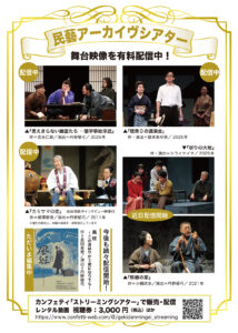 民藝公演の映像を配信している「民藝アーカイヴシアター」。現在4作品を有料配信中です。